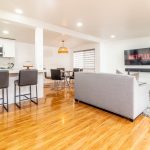 Una recamara, espacio para construir una 2da recamara, 1.5 baños, cocina integral con gabinetes de madera y barra de Cuarzo, área grande para sala y comedor, patio con fogata, área de lavado con lavadora y secadora, estacionamiento para 2 carros en área abierta.